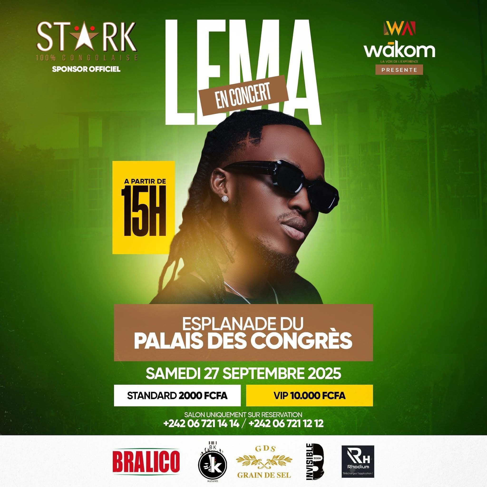 Lema donnera un concert, le 27 septembre, à l’esplanade du Palais des congrès de Brazzaville. L’artiste, figure montante de la musique congolaise, présentera ses plus grands titres et des nouveautés en exclusivité. Ce rendez-vous s’annonce comme un moment fort de la rentrée culturelle, placé sous le signe de la passion, de l’authenticité et du renouveau artistique.