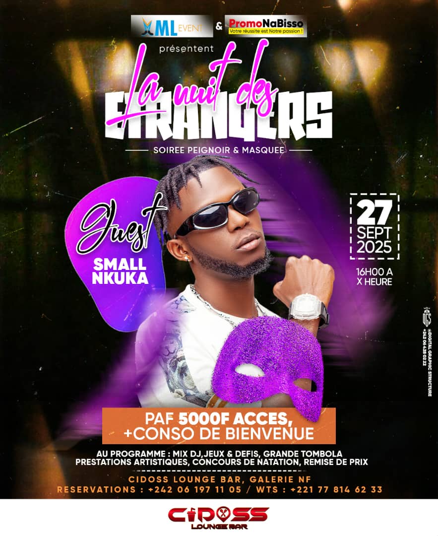 Le 27 septembre, Brazzaville vibrera au rythme de « La Nuit des étrangers », une parenthèse artistique et décalée imaginée par le Cidoss Lounge Bar, YML Event et Promo na bisso. Dans cet écrin festif, le peignoir et le masque s’érigeront en symboles d’une liberté réinventée, entre audace vestimentaire et revendication identitaire.