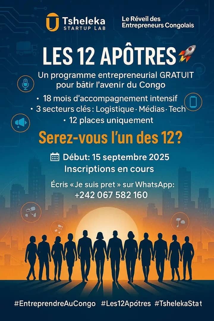 A travers ce programme « Les 12 apôtres », la startup Tsheleka accompagnera les jeunes congolais dans la concrétisation de leurs idées en leur fournissant des outils, des formations et un réseau de soutien. Elle se fonde sur l’idée que chaque jeune a du potentiel et qu’il suffit d’un bon accompagnement pour transformer une idée en succès. « Tes idées ont plus de valeur que ton capital. Entrepreneurs africains, cette vérité change tout, trop souvent, nous pensons qu'il faut ... Lire la suite