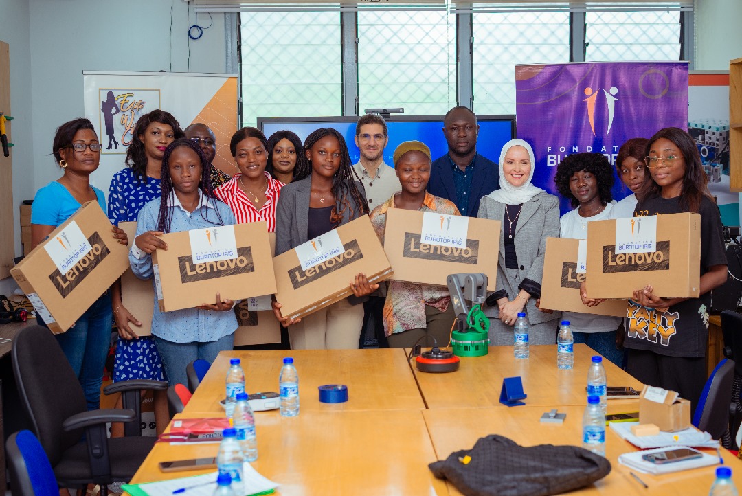 Le directeur exécutif de la Fondation Burotop Iris, Issa attye, a remis, le 26 avril à Brazzaville, des laptops aux jeunes femmes porteuses de projets sélectionnées dans le cadre du programme Femme et Entrepreneuriat Numérique au Congo (FENC), qui assistent à une formation au laboratoire de fabrication numérique (Fablab).