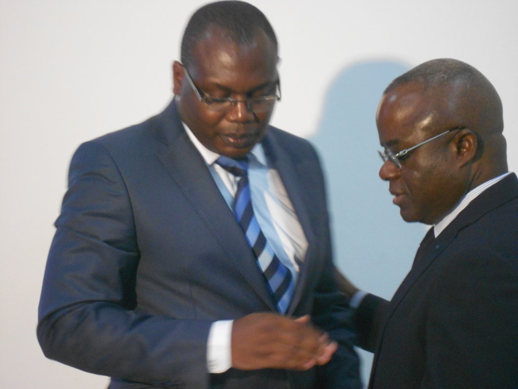 S’exprimant au nom des lauréats, Delphine Édith Emmanuel Adouki a rappelé que les résultats obtenus par l’université Marien-Ngouabi témoignaient aussi bien d’une initiative prise au niveau institutionnel que personnel. Au niveau institutionnel, a-t-il indiqué, les promus ont bénéficié de l’engagement indéfectible du président de la République pour la promotion de l’enseignement supérieur, de l’appui multiforme du ministère de tutelle et du rectorat. « À l’issue de ce que l’on pourrait considérer comme un parcours initiatique, nous tirons les leçons suivantes qui se résument en quelques mots : l’engagement, la solidarité, la disponibilité et surtout l’humilité. Nous rappelons solennellement par la présente que nous sommes au service de notre université et de nos collègues que nous accompagnerons dans leur promotion », a-t-elle ajouté. Enfin, elle a formulé le vœu que Brazzaville soit de nouveau ce centre de formation universitaire qui rayonnait de mille feux et qui a formé tant de générations de juristes africains. Parfait Wilfried Douniama Légendes et crédits photo :Photo 1 : Les quatre lauréats au premier plan. Photo 2 : Georges Moyen congratulant Mathias Marie Adrien Ndinga. (crédits photos Adiac) |