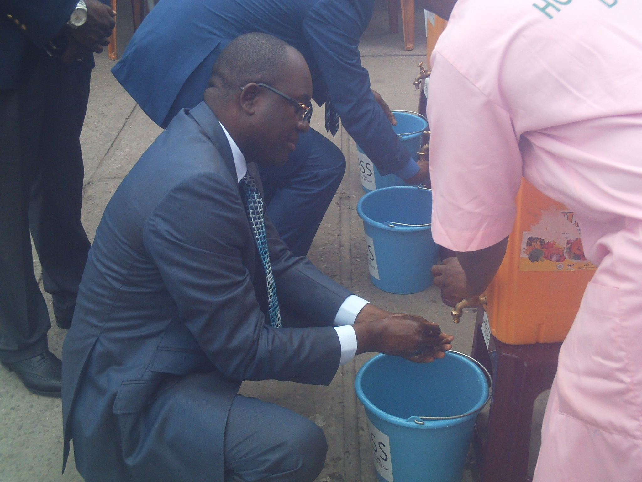 L’objectif de cette activité est de sensibiliser le maximum de personnes notamment les enfants aux conséquences d’une mauvaise hygiène des mains car le lavage des mains sauve des vies, prévient les maladies graves qui sont le plus souvent transmises par les mains chez les enfants. Ces maladies sont entre autres : les diarrhées, la fièvre hémorragique à virus Ebola, le choléra, a dit Cyril Rabeisen, délégué IECD en République du Congo. Le chef du projet PASS qui n’a manqué de féliciter la direction de l’hôpital de base de Tié Tié qui, depuis dix-huit mois a accompli d’énormes progrès aussi bien dans l’hygiène de l’eau que dans son organisation « Sur les 300 personnes qui, en 2014 ont reçu une formation et un accompagnement personnalisé : infirmières, sages-femmes, techniciens de surface, il y a près d’une centaine qui travaillent ici » a renchéri Cyril Rabeisen. Pour Jean Pierre Michel Ndzondault, directeur départemental de la santé de Pointe-Noire, les agents de santé doivent s’impliquer pour éduquer, former les gens qui fréquentent l’hôpital sur ces gestes simples de lavage des mains à l’eau et au savon après avoir été aux toilettes ou avant de manger par exemple. « Cette hygiène de vie se pose à nous comme mode de vie et surtout comme premier palliatif dans la lutte contre le fléau. Cette activité serait vaine si elle s’arrêtait seulement à notre niveau ici. Nous devons, chacun en ce qui le concerne, être les vecteurs de diffusion de cette hygiène à divers niveaux dans nos services, à l’école, au marché... C’est à ce prix seulement que nous allons contribuer efficacement à réduire le taux de contamination et de propagation de certaines maladies » a conclu Guy Edmond Loemba, administrateur-maire de Tié Tié. Une démonstration sur les bonnes procédures de lavage des mains a été faite par le Dr Byemba et le personnel de l’hôpital suivie d’un échange avec la population sur ces gestes sobres qui, bien exécutés sauvent des vies. Hervé Brice Mampouya Légendes et crédits photo :Guy Edmond Loemba, maire de Tié Tié entrain de laver les mains