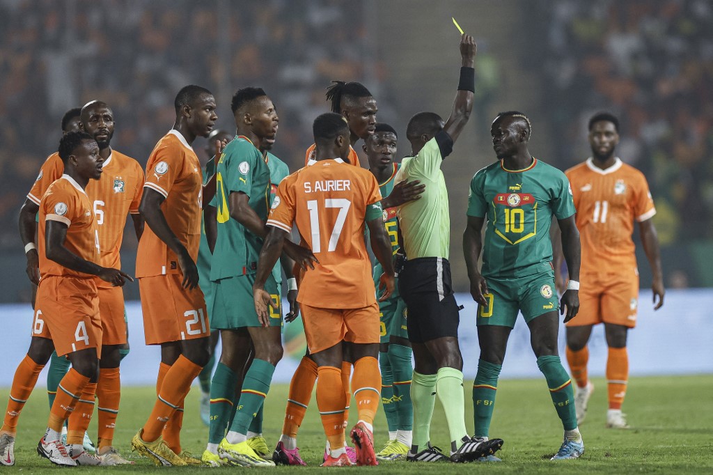 2-Une victoire méritée des Ivoiriens, malgré les erreurs d'arbitrage de M.Atcho, comme ce jaune pour Mané, qui méritait le rouge /AFP Notification:Non |