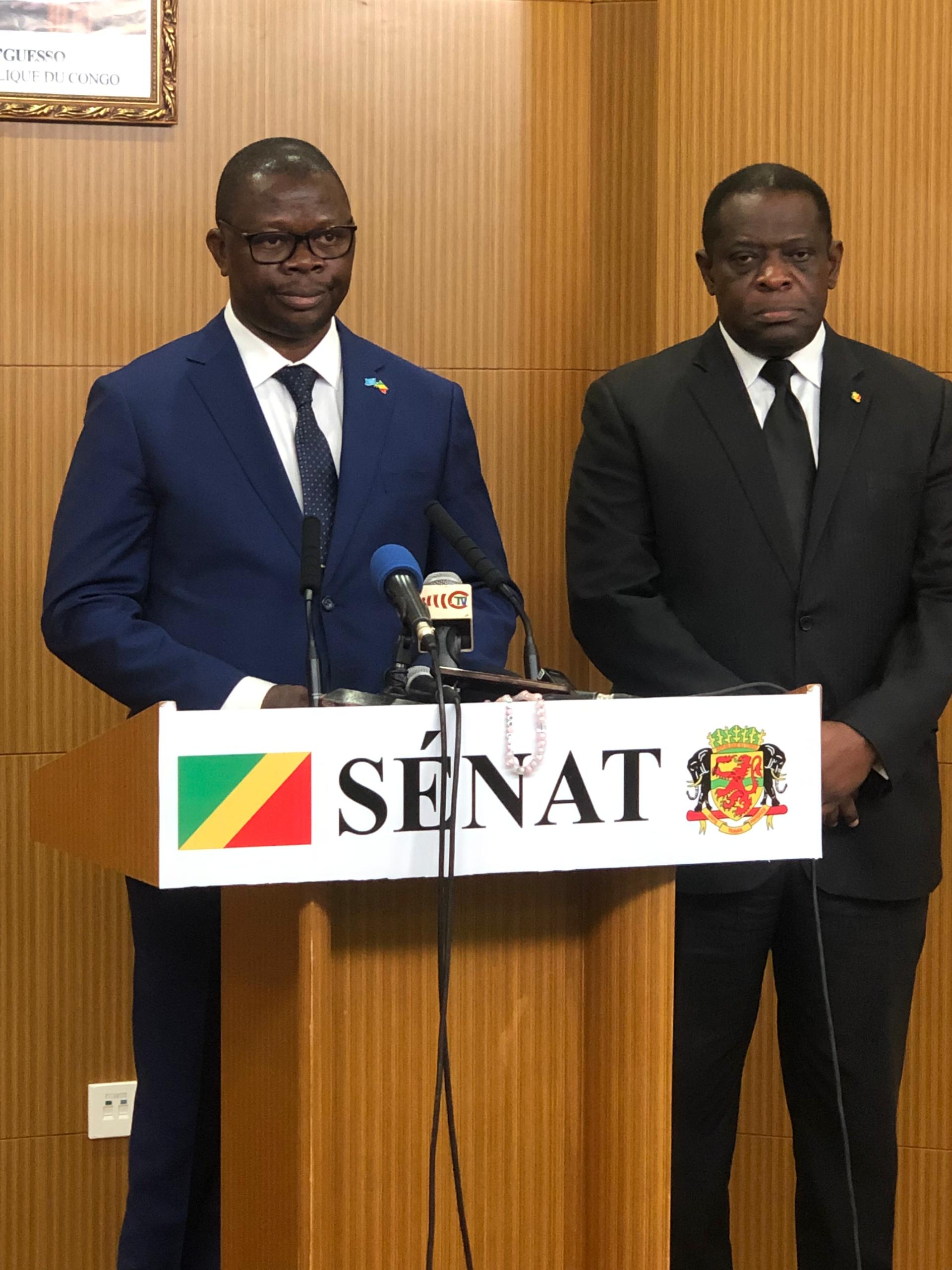Le Dr Vincent Dossou Sodjinou a, par ailleurs, sollicité le soutien du Sénat dans le rôle de contrôleur de l’action gouvernementale afin d’assurer l’efficacité et la gestion des fonds équitables alloués aux départements en charge de la santé à intégrer le principe de santé pour tous. « Nous savons que tous les budgets des ministères sont revus par le Sénat pour validation et quitus, et donc nous envisageons de travailler avec le Sénat pour que cette notion de santé dans toutes les politiques puisse être transcrite dans les différents budgets des ministères sectoriels », a-t-il annoncé. Plusieurs autres points importants ont été abordés au cours de cette audience. Il s’agit, entre autres, du renforcement de la mise en œuvre des soins de santé primaires au Congo. Selon le Dr Vincent Dossou Sodjinou, le Congo a fait d’énormes avancées en matière de construction des hôpitaux. Il a également rappelé que le pays a un bon tissu hospitalier qui joue bien son rôle. Cependant, il doit renforcer la base de la pyramide sanitaire « en faisant en sorte que les centres de santé intégrés (CSI) soient proches des communautés, soient animés par des hommes et des femmes qui sont qualifiés, soient dotés des compétences nécessaires des populations, soient dotés de moyens matériels et logistiques pour répondre aux besoins sanitaires des populations. Les CSI devraient être également reliés avec les hôpitaux et les grands centres hospitaliers par des routes, des infrastructures qui vont permettre que la référence et la contre-référence soient aisées et puissent permettre de réduire la mortalité, la létalité liée à certaines maladies », a conclu le Dr Vincent Dossou Sodjinou. Il convient de rappeler que le Dr Vincent Dossou Sodjinou est, depuis la présentation de ses lettres de créance le 27 juin dernier, le nouveau représentant de l’OMS au Congo, après avoir assuré l'intérim pendant quelque temps. Jean Pascal Mongo-Slyhm Légendes et crédits photo :Le Dr Vincent Dossou Sodjinou répondant aux questions de la presse en présence du sénateur Jean de Dieu Kourissa/DR Notification:Non |