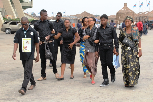 quelque temps plus tard par les membres de l’Association des musiciens chrétiens du Congo (AMCC) avec en tête, son président, le frère Patrice Ngoy Musoko, étaient les premiers de la procession funèbre à faire leur entrée sur le lieu mortuaire. Depuis la matinée, les Kinois y affluaient par vagues au fur et à mesure que les heures s’égrenaient. Près d’une heure après, la vue du cercueil blanc n’avait laissé personne indifférent. Accueilli par les clameurs d’une foule en pleurs, c’était là le témoignage que le défunt avait une place dans plusieurs cœurs. Pour s’assurer de ne pas manquer ce moment, plusieurs Kinois avaient choisi d’investir la place pour attendre l’arrivée du cortège.