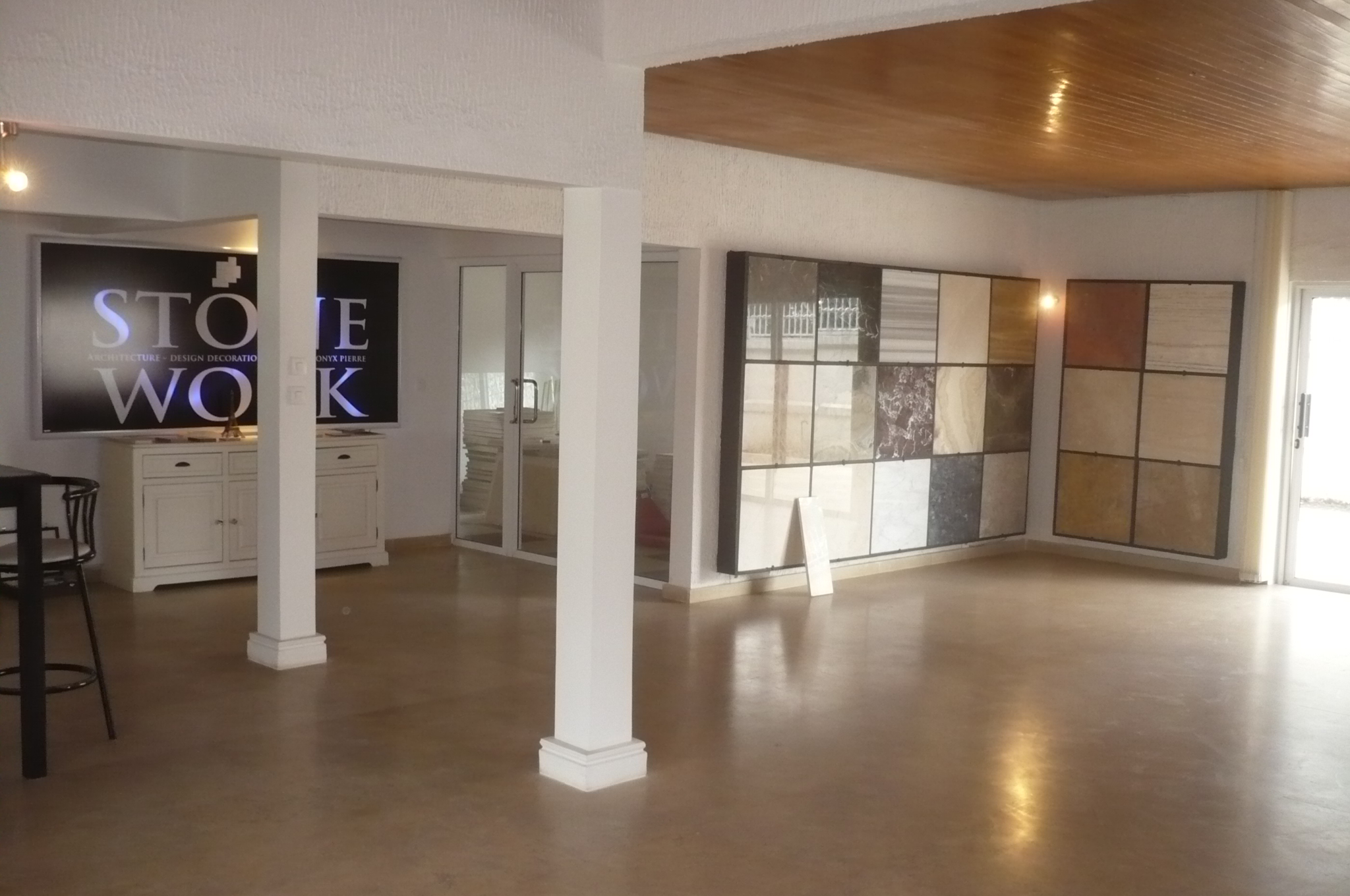 Guy-Gervais Kitina Légendes et crédits photo :Photo 1: Rodrigue Passy, représentant de la société Stone Work Afrique au Congo; photo 2: Une vue du Show room de Stone Work. |