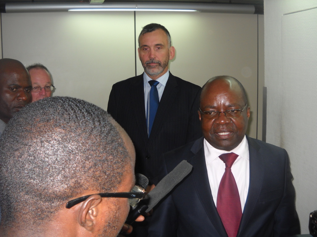 Photo 2 : Le directeur général de l'environnement répond aux questions de la presse (derrière lui le gérant de Congo Mining). |