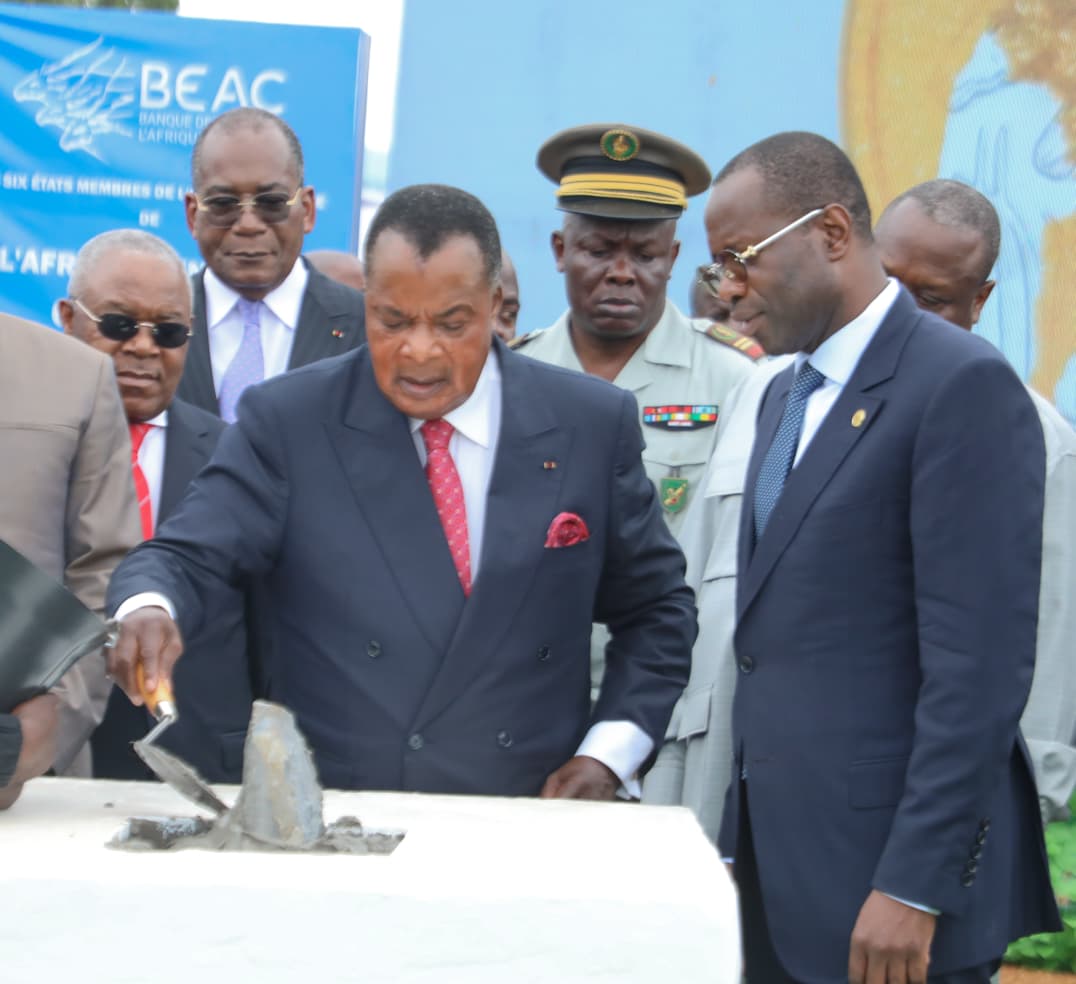 Ministre des Finances, du budget et du portefeuille public du Congo, Christian Yoka a pour sa part dépeint une ville industrielle dynamique, un marché bancaire structuré avec de nombreux établissements financiers, un lieu de bouillonnement économique avec une population jeune. Dolisie est pour la BEAC un choix stratégique assumé, a-t-il souligné appelant l'institution à mener le projet jusqu'à son terme dans les règles de l'art et la transparence. Si le vice-maire de Dolisie, dans son intervention, a salué un projet intégrateur et générateur d'opportunités économiques diverses, en plus de réclamer une municipalisation additionnelle et une université pour le Niari, le représentant des sages, communiant avec les mânes du département, a appelé à prémunir le lieu de construction de l'agence de toutes tentatives de perturbation des travaux. C'était peu avant la pose officielle de la pierre du début des travaux par le Président de la République. Créée le 22 novembre 1972 à Brazzaville, la BEAC regroupe le Cameroun, la Centrafrique, le Congo, le Gabon, la Guinée Équatoriale et le Tchad. Outre le siège national de Brazzaville, le Congo dispose pour le moment de trois agences de la banque sous-régionale à Pointe-Noire, Ouesso et Oyo. Au terme de son séjour dans à Dolisie, le chef de l'Etat poursuivra son périple par Sibiti dans le Lekoumou qui l'accueille ce jeudi en milieu d'après-midi. Gankama N’Siah Légendes et crédits photo :1- Pose de la première pierre par le président de la République