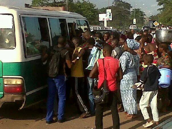 Les contrôleurs et chauffeurs feignant l’ignorance et même le défi remplissent leur bus, oppressant la population désabusée par la sévère balance de l’offre et de la demande. A ceux qui, une fois installés, réconfortés de pouvoir enfin avancer dans leur trajet, mais mécontents de ses modalités, interrogent chauffeur et contrôleur ; la litanie leur est de nouveau chantée : « Est-ce qu' eza biso ? Il faut to kokisa recette » qui peut se traduire par «Ce n’est pas de notre faute. Nous devons totaliser la recette.»