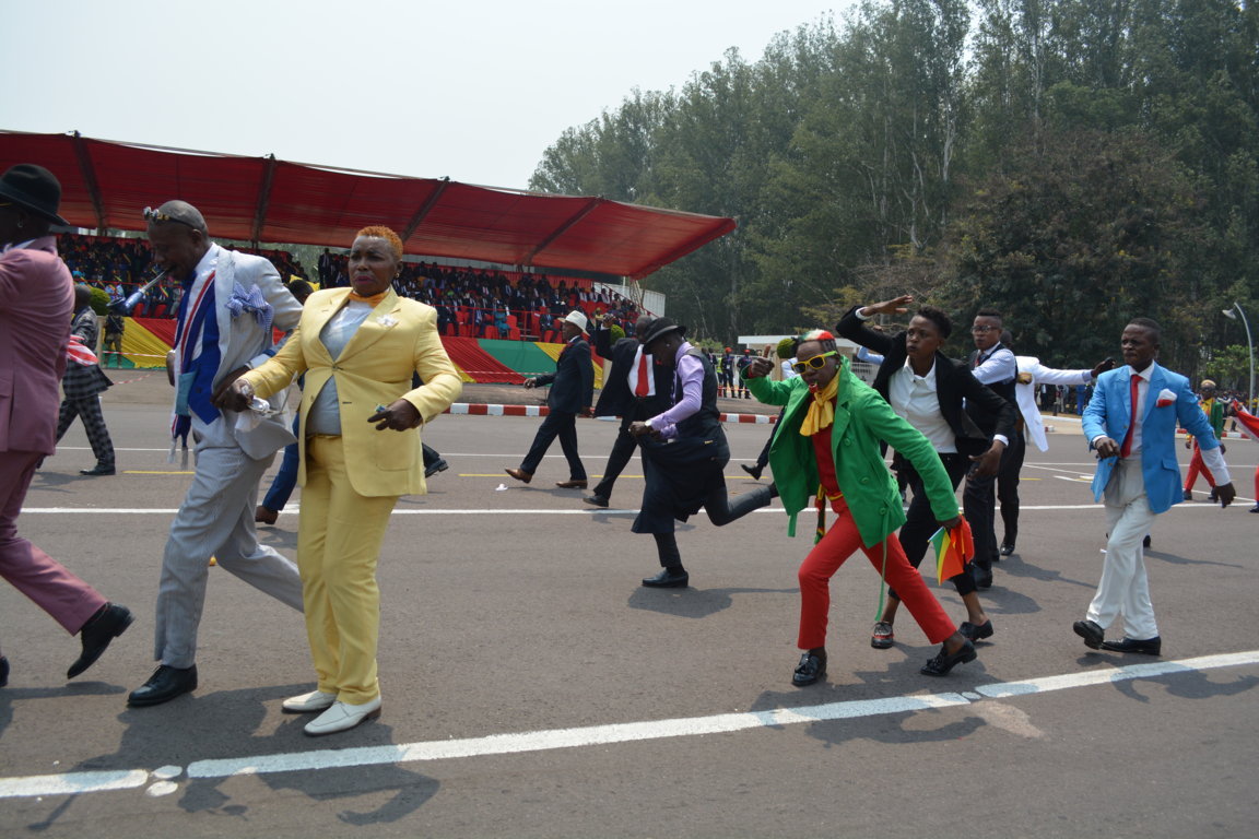 Des sapeurs qui ont fait de l’élégance un art de vivre ont également défilé en exhibant des chaussures de marque et costumes colorés, parfois aux couleurs panafricaines (vert, jaune, rouge). Peu importe si ces sapeurs congolais se sont ruinés en cette période de crise économique. Qu’ils empruntent ou collectent de l’argent pour s’acheter des costumes, leurs problèmes financiers ont été cachés sous les vêtements coûteux qu’ils ont portés ce jour de célébration de la fête nationale. « Ce geste exprime le patriotisme et l’amour pour mon pays », a lancé un sapeur. « Le 15 août de chaque année, j'aime toujours m’habiller aux couleurs nationales pour montrer mon amour pour ce pays, le Congo », nous confie une jeune femme, la trentaine révolue, arborant une veste jaune assortie d’un tee-shirt vert, pantalon rouge et des chaussures tricolores. Participant à son premier défilé du 15 août, le gendarme Jules France, la trentaine, s’est déclaré très heureux. « C’est ma première fois de participer au défilé du15 août. C’est conforme à ce qu’on m’avait dit, c’est une très belle fête marquée par ce défilé avec beaucoup de participants qui mettent à l’honneur les couleurs nationales », a-t-il déclaré. Il convient de rappeler que les couleurs vert, jaune, rouge sont celles du panafricanisme. Elles proviennent du drapeau éthiopien: le rouge symbolise la lutte de liberté ; le vert pour la nature du pays et le jaune les richesses naturelles. Yvette Reine Nzaba Légendes et crédits photo :- le carré des jeunes filles en vert-jaune-rouge