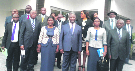Le ministre Jean-Rosaire Ibara s’adressant à ses collaborateurs ; Jean-Rosaire Ibara posant avec les membres de son cabinet/Adiac