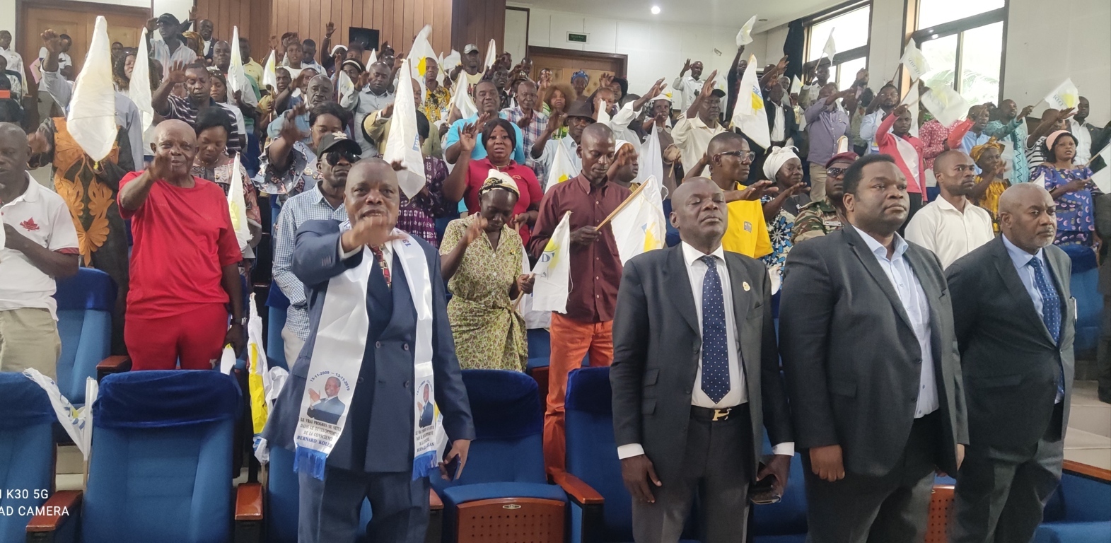 Guy-Gervais Kitina Légendes et crédits photo :1-Le président national du MCDDI (au centre) ouvrant les travaux de la session extraordinaire