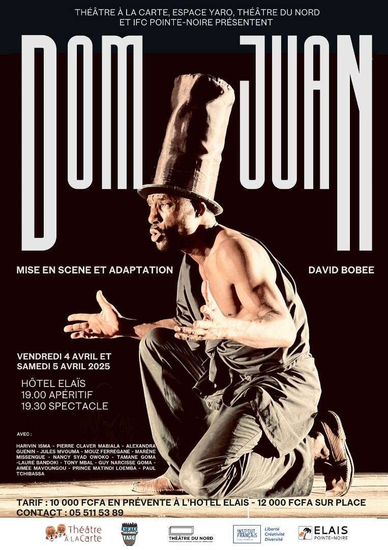 Théâtre : la pièce « Dom Juan » version congolaise sur scène ce week-end03-04-2025 17:30 Classique de la littérature française, la pièce « Dom Juan » de Molière débarque dans la capitale économique du Congo, où elle sera jouée ce 4 et 5 avril à l’hôtel Elais par des grands noms du théâtre ponténégrin et congolais, avec une adaptation et une mise en scène de David Bobée, directeur de Théâtre du Nord de France.