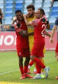 Remplaçant au coup d’envoi, Aurel Loubongo Mboungou est apparu à la 50e minute lors du revers d’Oldenbourg chez la réserve de Jeddeloh (1-3). Belgique, 1re journée, 1re division Alexis Beka Beka est resté sur le banc lors de cette première journée de Jupiler League. Sans l’ancien Caennais, La Louvière s’incline à domicile face au Standard de Liège (0-2). Bulgarie, 2e journée, 1re division Le Lokomotiv Sofia prend un point sur le terrain d’Arda (1-1). De retour de blessure, Ryan Bidounga est entré à la 47e minute, alors que les locaux menaient 1-0. Encore à l’infirmerie, Messie Biatoumoussoka était absent. Géorgie, 8e de finale de la Coupe Dila Gori se qualifie pour les quarts de finale en battant Samgulari aux tirs au but (5-4) après un match vierge. Si Romaric Etou est resté sur le banc, Déo Gracias Bassinga est entré en cours de match et a marqué son tir au but. Israël, 2re journée de la Coupe de la Ligue, groupe A Deuxième défaite en autant de rencontres pour Bnei Raina, sousmis sur ses terres par l’Hapoel Haïfa (3-4). Un match joué sans Chance Leroy Mondzenga, blessé au bout d’une minute lors du match précédent, perdu face à Tiberias. Vainqueur de leur premier match à Petah Tikva, l’Hapoel Tel Aviv et Fernand Mayembo affronteront l’Hapoel Jérusalem ce 29 juillet. Lettonie, 24e journée, 1re division Daugavpils bat Jelgava 2-0, avec Ceti Taty Tchibinda titulaire. Entré à la 65e minute, Trésor Samba a délivré une passe décisive sur le second but de son équipe face à Auda (2-0) au terme d’une percée tout en puissance sur le côté gauche. Malte, tournoi de Mosta Christoffer Mafoumbi était titulaire lors du revers de Marsaxlokk à Valletta (0-2). Camille Delourme Légendes et crédits photo :Déo Gracias Bassinga a réussi son tir au but / DR Notification:Non |