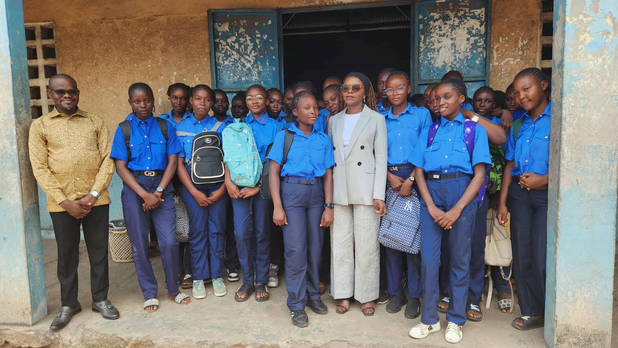 2- La présidente de la FCRM et d'autres membres de la fondation posant avec les élèves du lycée Sébastien-Mafouta/Adiac Notification:Non |