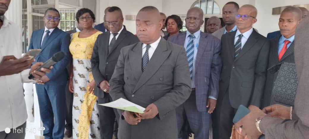 En effet, en raison de la non-prise en compte des engagements et du non-respect des accords bipartites gouvernement-syndicat des enseignants regroupés autour de cette plateforme, la Psen avait publié un préavis de grève observé du 27 septembre au 4 octobre en cas de non satisfaction persistante de ses revendications socioprofessionnelles. « Dans le souci de marquer sa disponibilité à négocier et pour l’intérêt supérieur de la nation et de nos enfants en cette période préélectorale, la Psen a entendu solliciter le concours et l’implication des autorités publiques parmi lesquelles le médiateur de la République… Après échanges fructueux sur les points objet du préavis de grève, la Psen a concédé la suspension de la relance de grève », a mentionné la coordination dans son compte rendu. Le médiateur de la République, de son côté, a pris l’engagement de s’impliquer personnellement auprès du gouvernement, notamment des ministres de tutelle, du ministère des Finances, du ministère d’Etat en charge de la Fonction publique, du Premier ministre et de la présidence de la République, en vue d’obtenir gain de cause. « Nous appelons les ministres concernés à faciliter l’implication du médiateur de la République, en vue d’un dénouement heureux, salvateur dans l’intérêt supérieur de nos enfants pour garantir la paix sociale à l’orée de l’élection présidentielle. A l’endroit des enseignants, donc notre base, nous réitérons la volonté de la Psen de poursuivre les démarches engagées afin que renaisse un lendemain professionnel meilleur », a poursuivi le porte-parole de la Psen, Herbin Baketiba, dans le compte rendu, promettant de revenir vers la base dans un délai d’un mois. Notons que cette plateforme revendique, entre autres, le paiement intégral des rappels de solde d’activités dus aux enseignants ; la publication de l’arrêté interministériel fixant les montants des primes et indemnités du statut particulier des agents du cadre de l’éducation nationale ; la tenue des commissions administratives paritaires (CAP). A ce propos, si le ministère en charge de l’Enseignement général a tenu sa CAP dont la publication des arrêtés est en cours, la Psen déplore, cependant, le silence au niveau du ministère de l’Enseignement technique et professionnel. A ces trois vieilles revendications contenues dans le relevé de conclusions, s’ajoutent le relèvement du point d’indice à 450 pour tous les enseignants au plus tard le 1er décembre 2025 ; la relance des allocations familiales des enseignants « coupées depuis fort longtemps par le ministère des Finances » ; l’augmentation du quota d’intégration des enseignants à 4 000 places. Parfait Wilfried Douniama Légendes et crédits photo :1-Valère Gabriel Eteka-Yemet s'entretenant avec les syndicalistes / Adiac