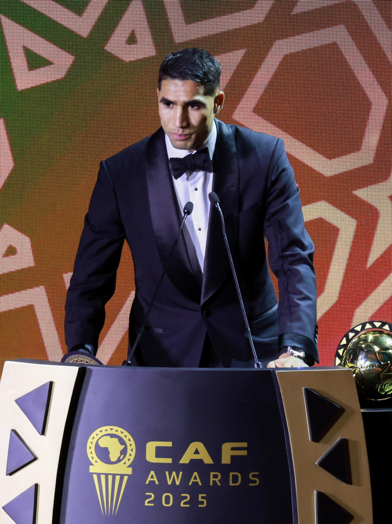 Joueur africain de l’année : Achraf Hakimi recompensé pour sa magnifique saisonJeudi 20 Novembre 2025 - 13:15 Achraf Hakimi, auteur de l’une des plus grandes saisons jamais réalisées par un défenseur africain, a été élu Joueur logique de l’année au cours de la cérémonie des CAF Awards organisée, le 19 novembre, à Rabat au Maroc où les plus grands talents du football africain ont été célébrés et honorés pour leurs exploits remarquables. Il succède au Nigerian Ademola Lookman.