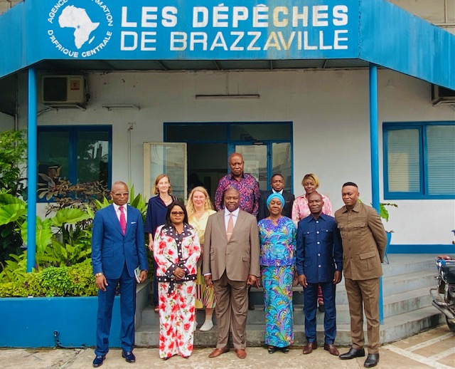 2- Jean Jacques Bouya posant aux côtés de la ministre l’Industrie culturelle du Congo et des responsables des Dépêches de Brazzaville/ Adiac Notification:Non |