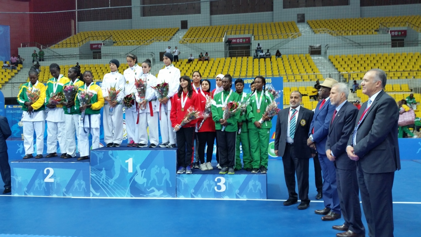 L’Afrique du sud est sixième avec sept médailles (deux d’argent et cinq de bronze) devant le Botswana cinq médailles (une d’argent et quatre de bronze). Le Gabon avec ses deux médailles, se classe à la huitième position avec une médaille d’argent et une de bronze. La Tunisie est neuvième avec trois médailles. Le Nigeria termine la compétition à la dixième place avec ses deux médailles de bronze. Le Benin et la Libye sont onzièmes avec une médaille de bronze. James Golden Eloué Légendes et crédits photo : Les karatékas algériens au podium Notification:Non |