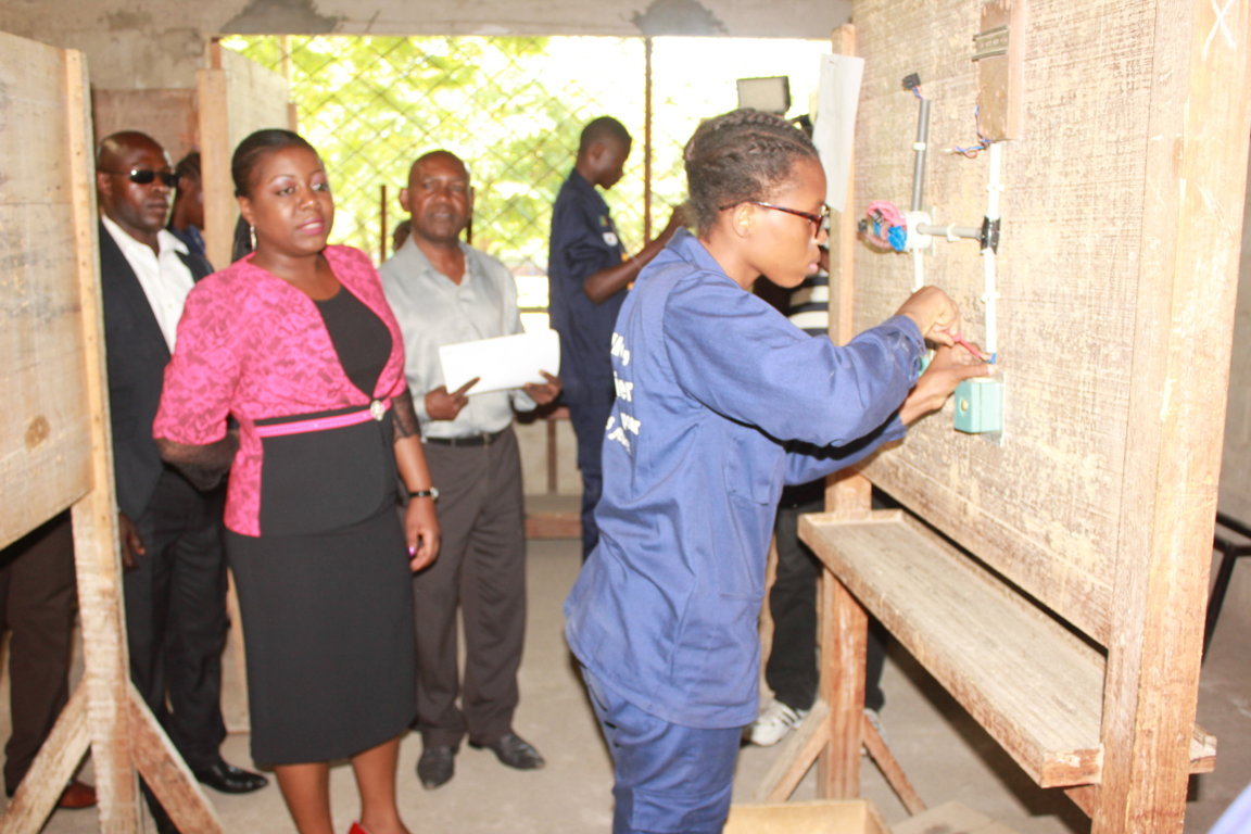 Le centre professionnel Don Bosco à Massengo, dans le 9ème arrondissement (Djiri), le centre de formation à l’esprit d’entreprise à Ouenzé, dans le 5ème arrondissement (Bacongo), ont été les principaux lieux d’apprentissage visités par la délégation. Pour cette première phase, près de 300 jeunes retenus dans les différents arrondissements, sont concernés. Ils suivent une formation de trois mois d’apprentissage aux différents métiers : menuiserie, soudure, mécanique auto, électricité et entreprenariat. De la ronde qu’elle a effectuée dans les différents centres, la ministre de la jeunesse et de l’éducation civique affirme avoir été marquée par la transformation des jeunes notamment à l’issue des échanges qu’elle a eues avec eux, notamment ceux qui font l'entreprereuriat. « Ça fait un mois qu’ils ont commencé leurs formations et je peux dire qu’à mi-parcours le bilan est quand même positif. Ce que j’ai vu, c’est que les jeunes ont déjà le jargon entrepreneurial. Je suis vraiment impressionnée. Et ça, ça nous rassure. Je pense que nous n’avons pas perdu du temps et de l’argent avec les partenaires au développement, en l’occurrence le Pnud avec la coopération japonaise », a-t-elle indiqué. Elle a notamment souligné que ce projet s’inscrit dans le cadre de la lutte contre la radicalisation des jeunes au niveau du Congo, « Nous sommes très rassurés. Nous espérons que ce projet va se poursuivre. Et je rappelle que c’était la phase pilote que nous avons lancée en fin 2016. Et nous voyons déjà que l’année 2017 s’annonce bien, puisque les résultats seront au rendez-vous. Je repars très satisfaite et dans un mois et demi nous reviendrons pour faire alors le bilan final, pour voir ce que cela nous a donné », a-t-elle conclu. Guillaume Ondzé Légendes et crédits photo :la ministre de la jeunesse suit la démonstration d'une jeune fille en formation Notification:Non |