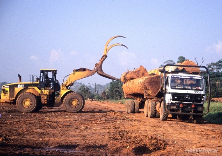 Saisie symbolique d’une pièce à conviction De l’avis de Greenpeace, le bois saisi est vendu par la compagnie Sicobois en RDC. Alors qu’il a été importé par la société française Peltier Bois. Dans une note publiée le 9 janvier, sur l’application en France du Règlement sur le bois de l’Union européenne (RBUE), Greenpeace France a révélé que le port de Caen est un point d’entrée important pour le bois illégal en provenance notamment de la RDC. « Greenpeace et d’autres ONG ont déjà alerté le ministère de l’Agriculture sur la présence de bois illégal dans les ports français », a précisé cette ONG international. « Nous exhortons les autorités françaises à saisir ce bois illégal et à appliquer les dispositions du RBUE, afin de contribuer à la protection des forêts congolaises et à la lutte contre le commerce illégal du bois », a appuyé le coordonateur national RDC pour Greenpeace Afrique, Raoul Monsembula. On note que depuis mars 2013, censé s’appliquer dans tous les pays de l’Union européenne, le RBUE est entré en vigueur. Il prévoit qu’un importateur de bois s’assure par tous les moyens de la légalité de son bois. Une immobilisation, voire une saisie ou des sanctions pénales peuvent être prises. Dans un premier cas d’application du RBUE en Europe, les autorités allemandes ont saisi, en 2013, deux cargaisons de bois illégal en provenance de la RDC. Pour Greenpeace France, qui note que le convoi de sa pièce à conviction a finalement été bloqué par les forces de l’ordre, le Projet de loi d’avenir sur l’agriculture, l’alimentation et la forêt, en discussion en ce moment au Parlement, doit donner les moyens à la France de lutter efficacement contre le trafic de bois illégal. « Aujourd’hui, le projet est trop faible : imprécis sur le régime de sanctions, sans moyens de contrôle supplémentaires », a noté L’ONG. Dans cette optique, Greenpeace a demandé au ministère et aux députés d’améliorer ce texte. Mais, en attendant, l’ONG assure se substituer aux autorités en saisissant une grume comme pièce à conviction. Lucien Dianzenza Légendes et crédits photo : Chargement des grumes sur une remorque en RDC |