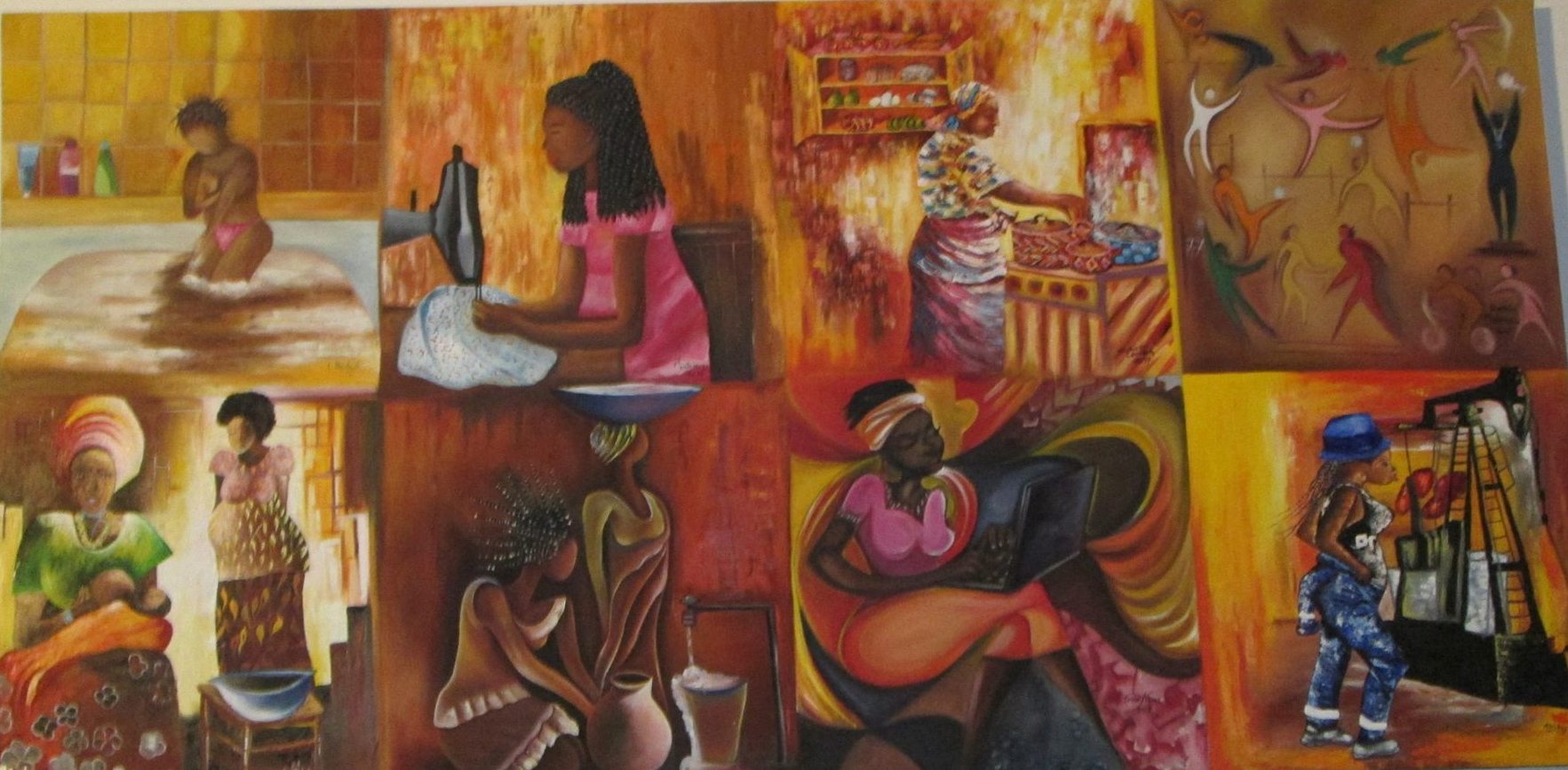 Hervé Brice Mampouya Légendes et crédits photo :Photo: La toile réalisée par les huit femmes
