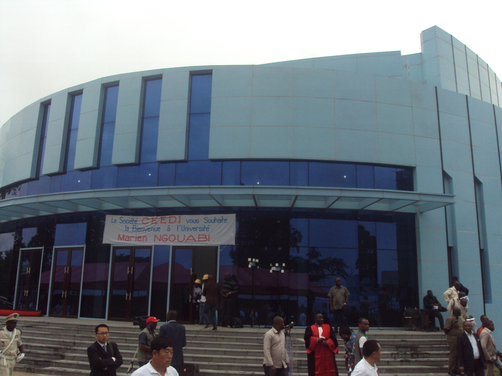 Dans la forme, chaque bâtiment de l’amphithéâtre est de forme elliptique et constitué d’une ossature en béton armé habillée des panneaux en alliage d’aluminium laqué, le tout couronné par une charpente métallique recevant des tôles en acier anodisé. Il occupe une superficie globale de 3 130 mètres carrés et se dresse sur hauteur de 15, 25 mètres répartie sur deux niveaux. Chaque bâtiment comprend un Rez-de-chaussée, un hall d’entrée ; une grande salle de cours à gradins de 1600 places ; deux salles polyvalentes de trente places ; des salles de stockage ; des locaux techniques ; des blocs sanitaires. Au niveau supérieur, on y trouve une salle de contrôle de son ; une salle de contrôle du bâtiment par vidéo surveillance ; un plancher haut de circulation recevant les équipements de la centrale de climatisation. Démarrés en décembre 2011, les travaux de construction de ces amphithéâtres ont été réalisés par l’entreprise CEEDI, sous le contrôle de l’ingénieur Conseil de Socotec Bassin du Congo. Pour faire sortir ces bâtiments de terre, l’État a déboursé environ 15, 380 milliards FCFA, y compris les bâtiments de salles de classe en construction à quelques encablures du rectorat. Présentant les caractéristiques de ces ouvrages, le ministre de l’Aménagement du territoire et de la Délégation générale aux Grands travaux a rappelé que les amphithéâtres modernes seuls ne sauraient apporter une satisfaction totale à l’ensemble des défis d’ordre infrastructurel qu’éprouve l’université. Cela au regard de la croissance galopante de la population estudiantine. Faire de Brazzaville l’épicentre de l’enseignement supérieur en zone Cémac Jean Jacques Bouya l'a dit, exprimant devant l'opinion la volonté du gouvernement consistant à faire de Brazzaville l’épicentre de l’enseignement supérieur en zone Cémac. L’enjeu de la formation est, a-t-il ajouté, devenu tellement planétaire que les ouvrages à construire doivent tenir compte des évolutions démographiques, des exigences pédagogiques des temps présents et futurs. «C’est pourquoi, à côté des amphithéâtres, trois bâtiments de trois étages consacrés uniquement aux salles de classe, sont en travaux», a indiqué le ministre, précisant qu’il était temps de reconfigurer l’université Marien-Ngouabi, au regard de l’afflux annuel des diplômés de l’enseignement secondaire. Le recteur de l’université Marien-Ngouabi, le Prof Armand Mouyikoua, qui est aussi monté à la tribune, a salué les efforts du président de la République en vue de l’amélioration des conditions de travail et d’études au niveau de cet établissement. Il a également rappelé que l’instauration du système Licence Master Doctorat (LMD) en 2012, conformément à la Déclaration des chefs d’État de la Cémac signée en 2005, à Libreville au Gabon, ne s’est pas fait sans difficultés. Il s’agit, entre autres, des contraintes liées à l’insuffisance des infrastructures. « Ces nouveaux cadres d’études qui vont indiscutablement placer les étudiants dans des conditions d’apprentissage optimales, nous rassurent sur votre détermination à œuvrer pour l’extension et la modernisation de l’université Marien-Ngouabi », s’est réjoui le recteur. Si les difficultés liées à la croissance exponentielle d’étudiants sont en cours de résolution, il se pose, a rappelé Armand Mouyikoua, actuellement et surtout demain le problème crucial de la relève quantitative et qualitative des enseignants. Rappelons que l’université Marien-Ngouabi existe depuis 43 ans. Seul établissement public d’enseignement supérieur du pays, elle a succédé à l’université de Brazzaville qui est issue de l’éclatement de la Fondation d’enseignement supérieur en Afrique centrale (FESAC). L’université Marien-Ngouabi compte onze établissements. Actuellement un troisième amphithéâtre moderne est en construction à côté du phénotype.